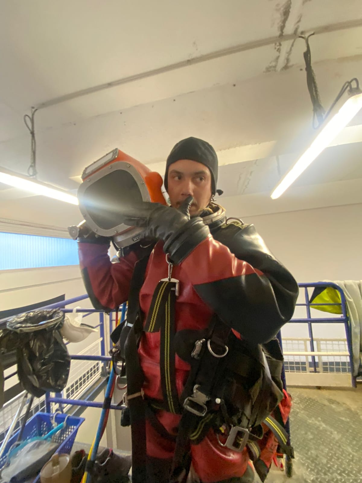 Cet hiver, je suis redevenu élève. J’ai troqué la légèreté de mes palmes en carbone et le silence de la chute libre contre des dizaines de kilos de plomb, un narguilé et un casque étanche. Je suis en formation pour devenir scaphandrier (Classe II A).